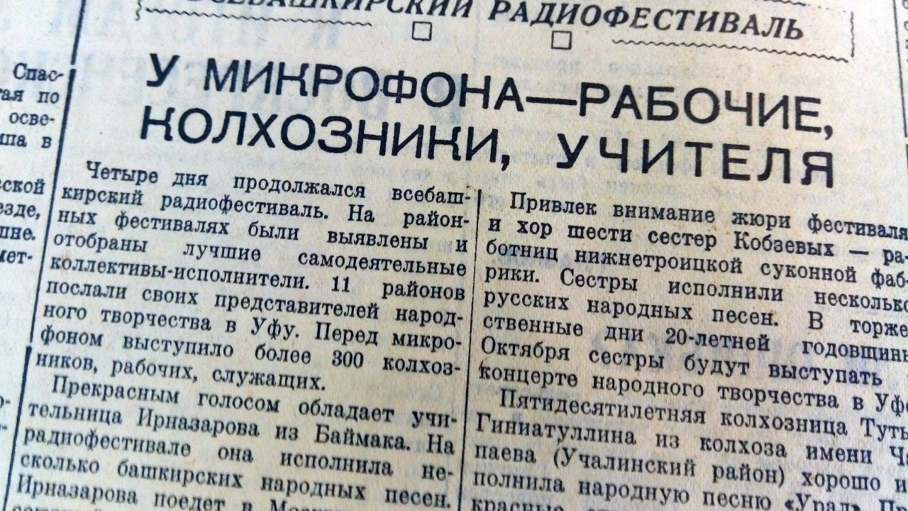 Учительница тубинского прииска Хачура Ирназарова из Баймака на радиофестивале исполнила башкирские народные песни. В публикации уточняется, что «Ирназарова поедет в Москву на всесоюзный радиофестиваль».