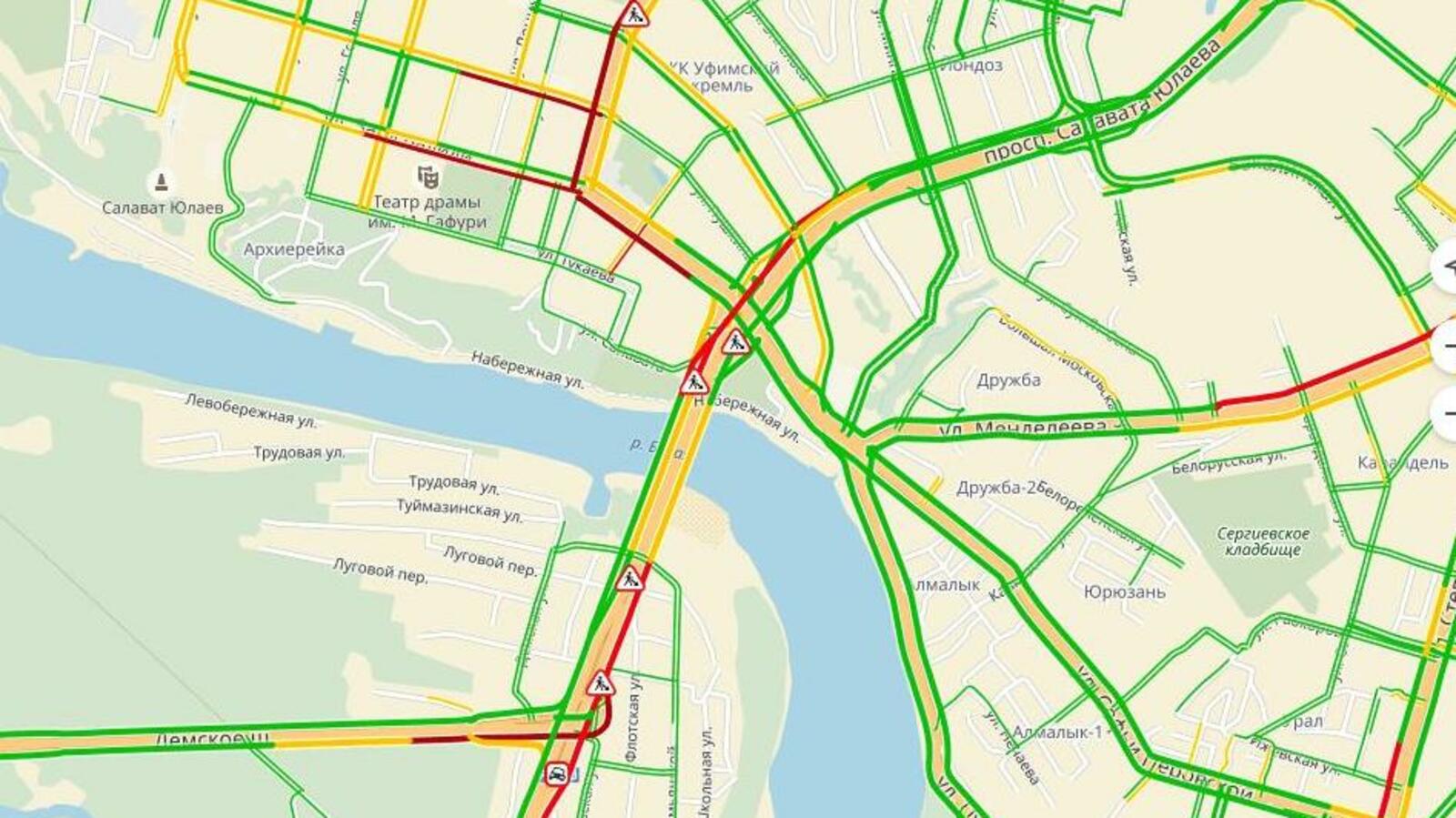 По данным сервиса «Яндекс.Карты», сейчас заторы в Уфе оцениваются в пять баллов.