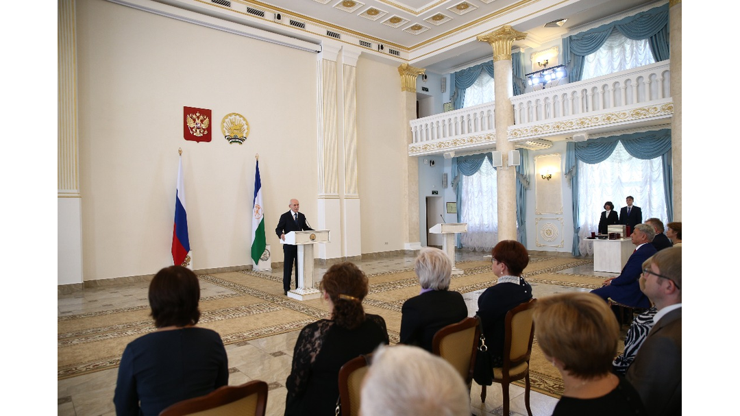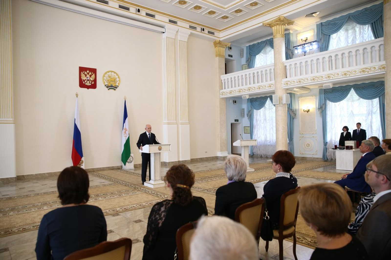 УФА, 9 окт 2017. /ИА «Башинформ»/. В преддверии Дня Республики Глава Башкортостана Рустэм Хамитов вручил государственные награды Российской Федерации и Республики Башкортостан. Орденами, почётными грамотами, званиями и благодарностями отмечены профессиональные достижения 47 работников, представляющих различные отрасли экономики региона. В числе награждённых также общественные деятели и опекуны детей, оказавшихся в сложной жизненной ситуации.
