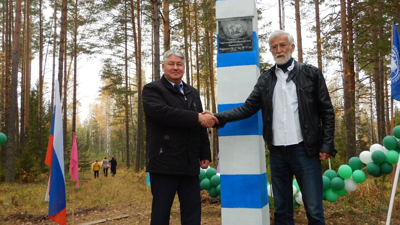 «Совсем немного времени прошло с тех пор, как на заседании Башкирского отделения РГО было принято решение об установке в крайних географических точках Башкортостана памятных стел. И вот сегодня мы собрались на гостеприимной янаульской земле, чтобы стать участниками исторического события - открытия первой стелы. Географические координаты - это своего рода адрес на поверхности планеты Земля. В данном случае, мы фиксируем адрес северных ворот нашей республики. Ворот в дом, двери которого широко открыты для каждого гостя. А дом наш огромный и довольно богатый. По площади он превосходит многие европейские государства. С севера на юг расстояние составляет 550 км, с востока на запад - 430 км. По разнообразию климатических зон и природных ландшафтов с нами мало кто может сравниться. Тут есть и тайга, и горная тундра, и смешанные леса, и степи, и лесостепи, и полупустыни. Имеются даже участки с вечной мерзлотой», - отметил глава регионального отделения РГО, известный писатель и путешественник.