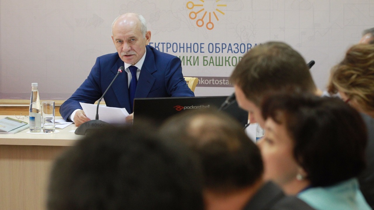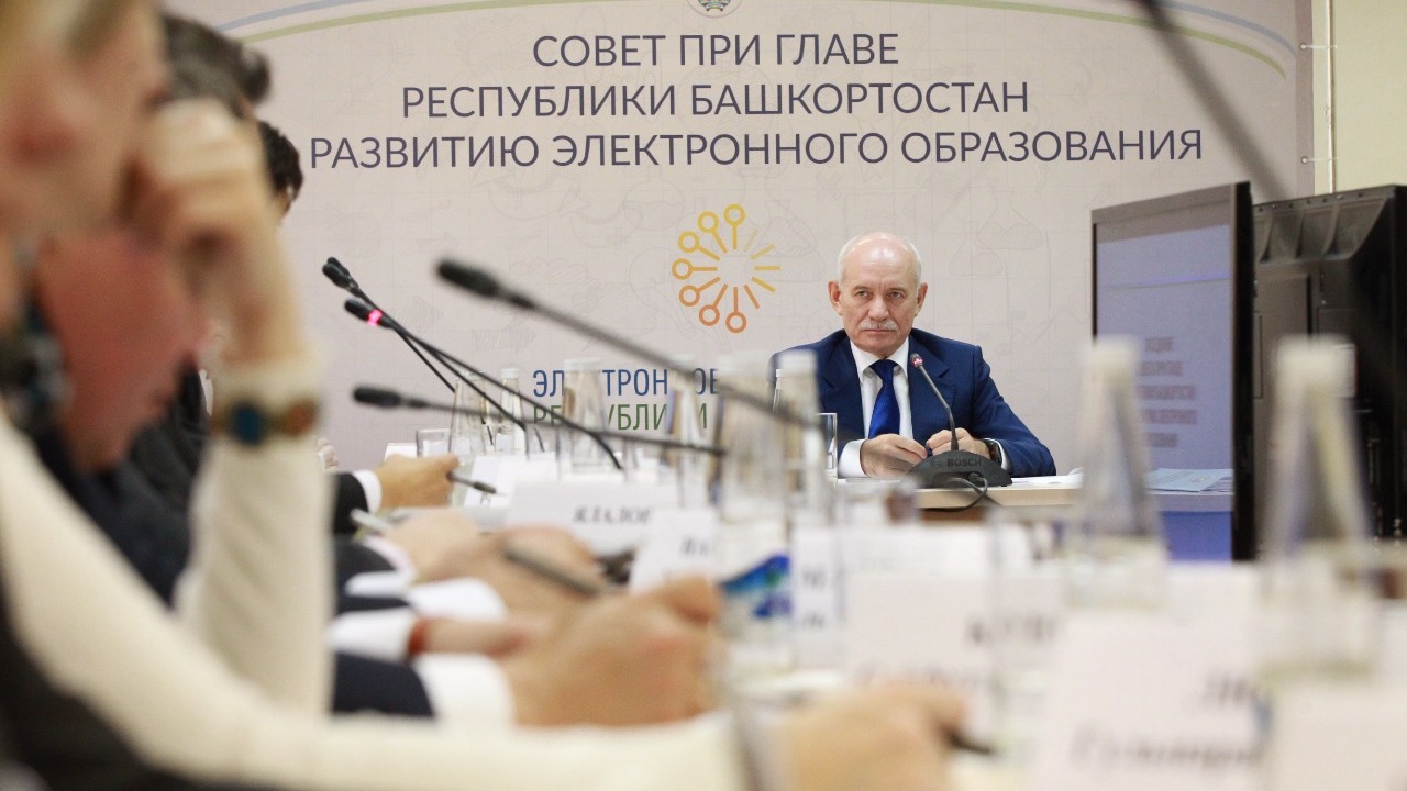 УФА, 24 окт 2017. /ИА «Башинформ»/. Сегодня в Башкирской академии государственной службы и управления Рустэм Хамитов провёл выездное заседание Совета при Главе Республики Башкортостан по развитию электронного образования. В нём приняли участие члены Совета, а также представители профильных министерств, ведомств, вузов и образовательных организаций республики.
