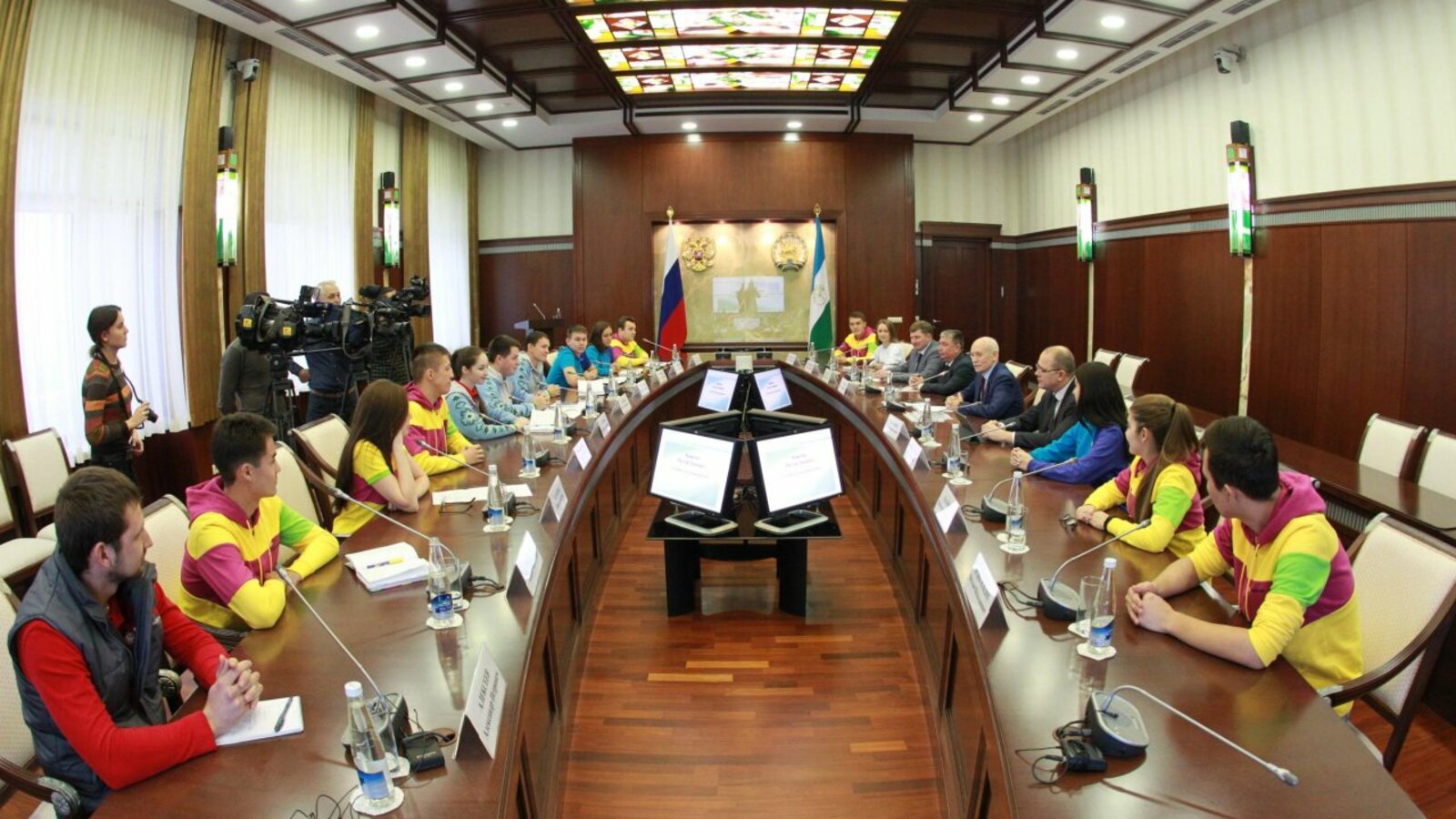 УФА, 8 ноя 2017. /ИА «Башинформ»/. Сегодня в Доме республики глава региона Рустэм Хамитов встретился с волонтёрами и участниками Всемирного фестиваля молодёжи и студентов, представлявшими Башкортостан.