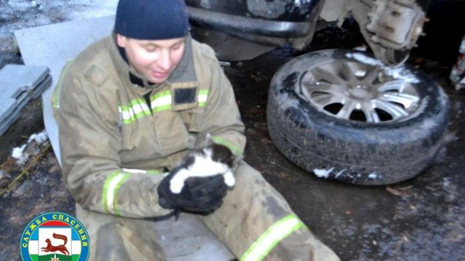 Уфимские спасатели вызволили из «автомобильного плена» котенка