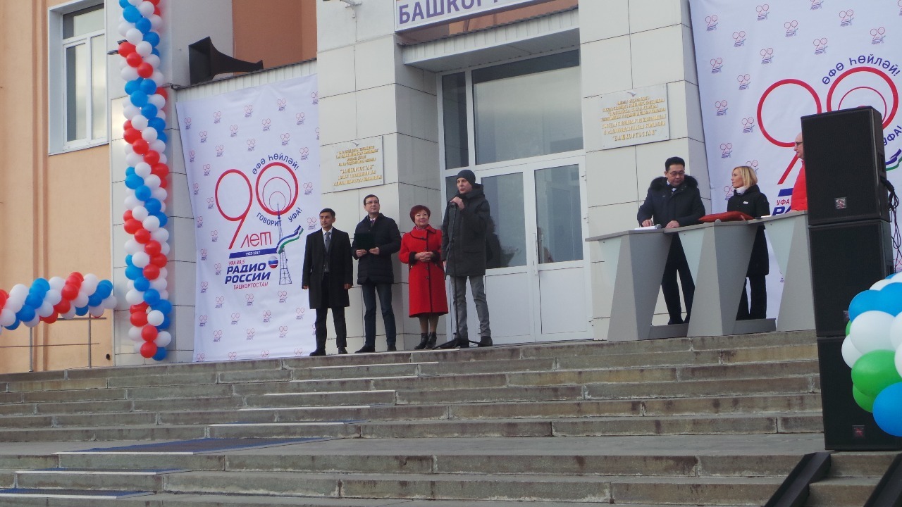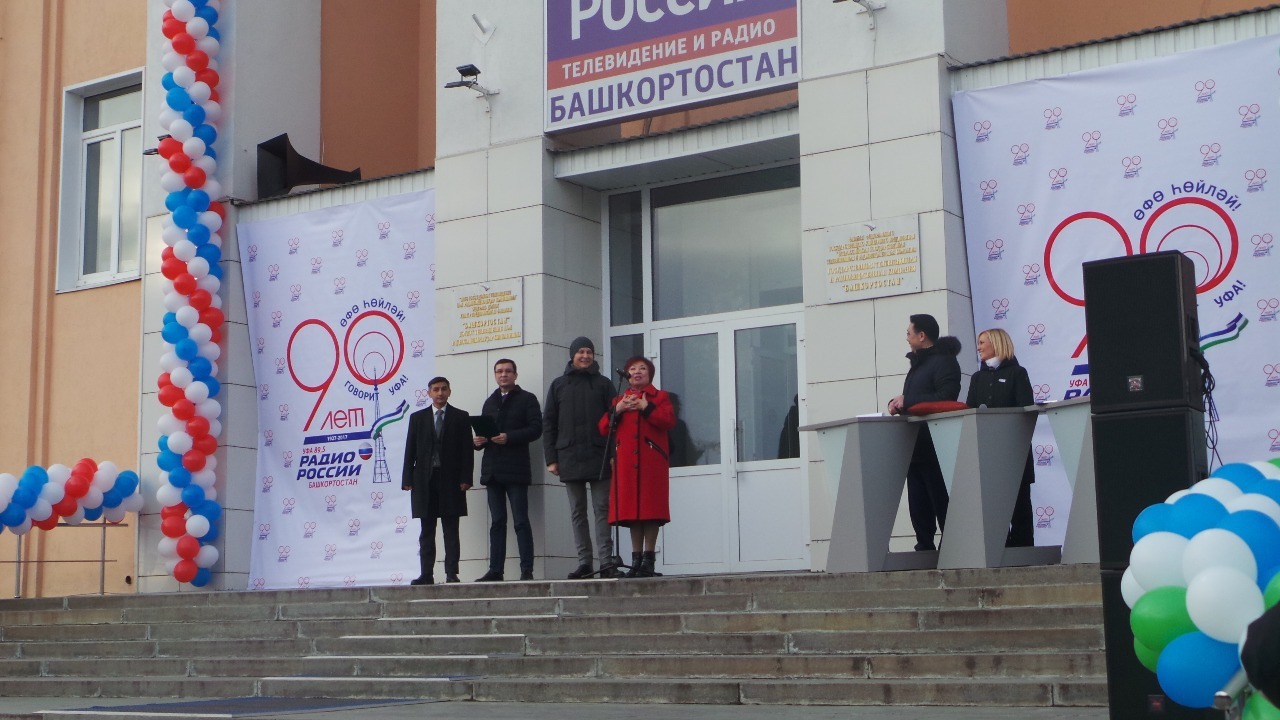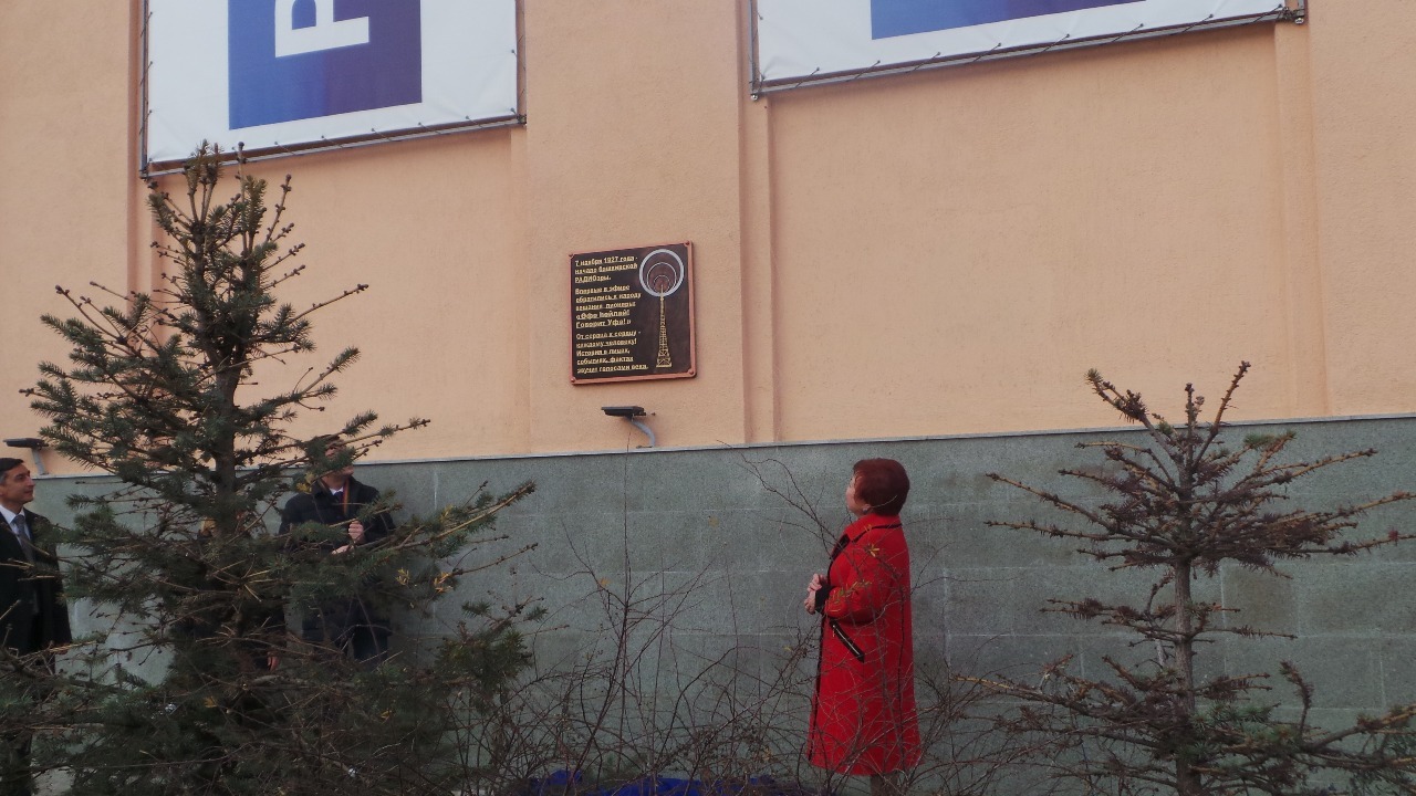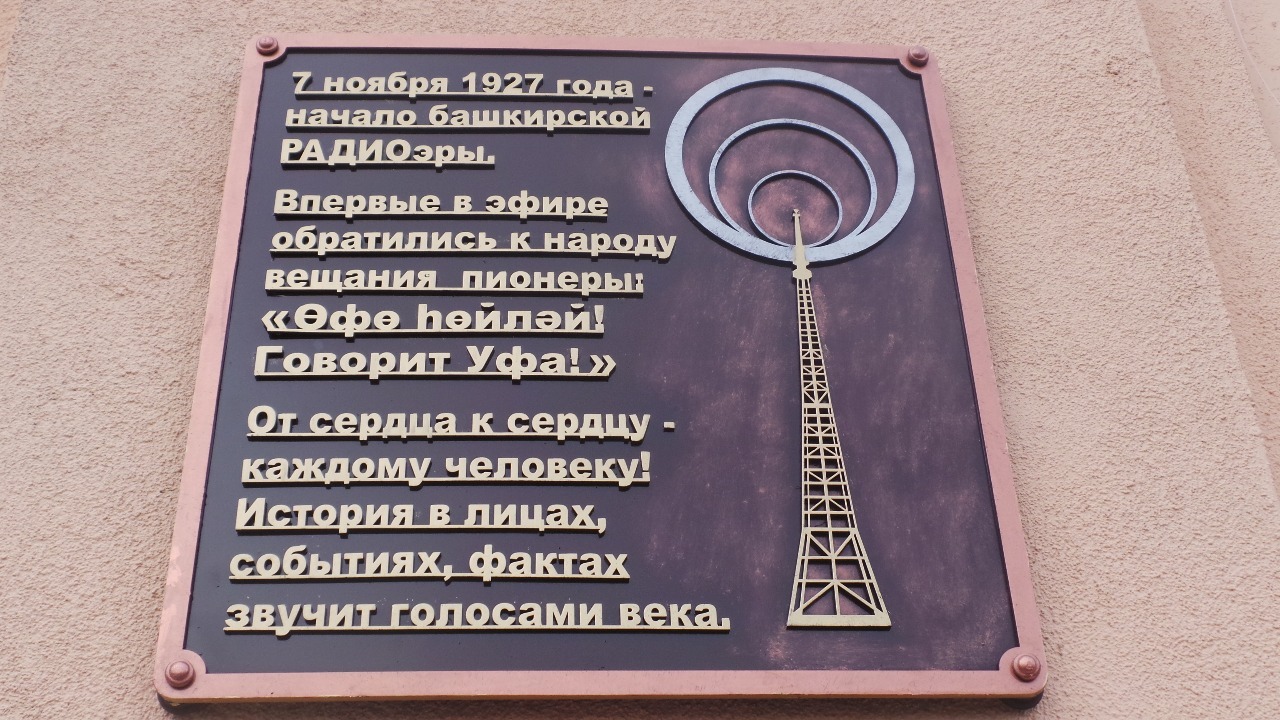Фасад здания телецентра с сегодняшнего дня украшает мемориальная доска на которой запечатлена дата первых позывных. Ее открыли директор Гостелерадиокомпании «Башкортостан» (филиала ВГТРК) Азамат Салихов и легенда радио, проработавшая здесь более полувека, народная артистка республики Наиля Галяутдинова. В церемонии также приняли участие руководитель агентства по печати и СМИ Борис Мелкоедов, народный артист РБ, председатель республиканской организации российского профсоюза работников культуры Александр Кузьменко, ветераны радиовещания, люди, жизнь которых в разные годы была связана с радио: бывшие и действующие дикторы, журналисты и корреспонденты, звукорежиссеры и другие работники этой сферы.
