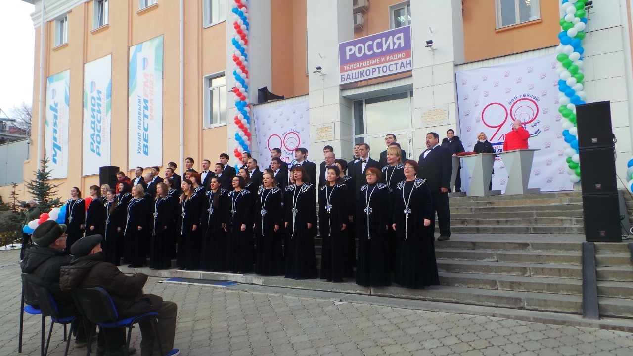 УФА, 23 ноя 2017. /ИА «Башинформ», Гульфия Акулова/. Сегодня в уфимском Телецентре проходят праздничные мероприятия по случаю 90-летия «Радио России-Башкортостан». 7 ноября 1927 года в разных уголках Башкирии из репродукторов на площадях, клубах и библиотеках впервые на башкирском и русском языках голосом первого диктора республиканского радио Елизаветы Цибульской прозвучали слова «Алло-алло! Говорит Уфа». С этого времени в Башкирской АССР началось регулярное радиовещание.