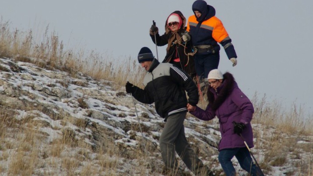 УФА, 24 ноя 2017. /ИА «Башинформ», Гульфия Акулова/. Восемь жителей Башкортостана с одновременным нарушением зрения и слуха (слепоглухие) при поддержке сотрудников Аварийно-спасательной службы РБ совершили свое первое в жизни восхождение на гору Тратау. Поход был организован Благотворительным фондом им. В.Л. Засова. Руководил группой Альфир Ахметшин.