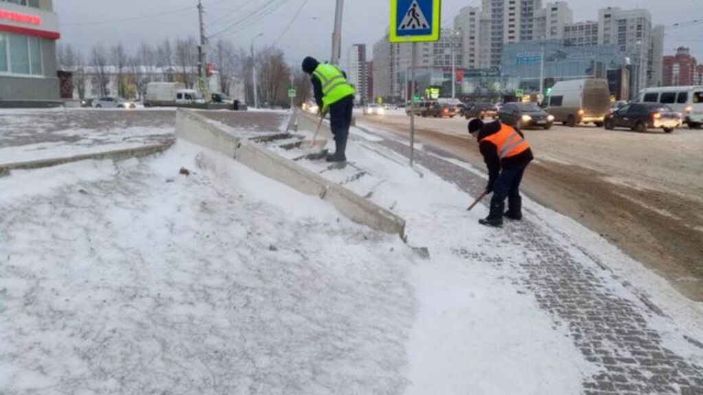 Коммунальные службы продолжили уборку снега и днем. Так, в Советском районе утра до вечера было задействовано 68 единиц техники, более 250 работников, вывезено 150 кубометров снега. Ведутся работы по посыпке песко-соляной смеси на пешеходной, проезжей части дороги, на остановках и на лестничных площадях, колонна снегоуборочной техники очищает дороги. Также дворники очищают от снега и наледи тротуары.