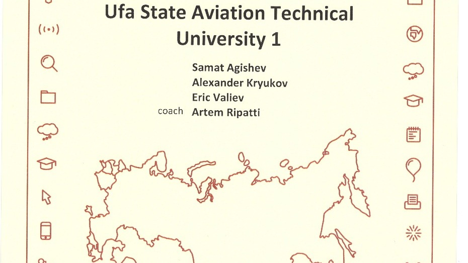 ACM ICPC - это крупнейшая в мире студенческая командная олимпиада по программированию, за лидерство в которой сражаются студенты из примерно 2500 университетов более 100 стран всех шести частей света. Поэтому диплом полуфинала - это уже несомненная победа студентов, их руководителей доцентов Александра Фридлянда, Юлии Валиахметовой и тренера - выпускника УГАТУ, двукратного финалиста чемпионата мира Артема Рипатти.