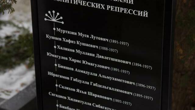УФА, 25 дек 2017. /ИА «Башинформ», Лейла Аралбаева/. В Москве на Донском кладбище состоялось открытие мемориальной доски 14 представителям башкирской интеллигенции, павших жертвами политических репрессий. Здесь в Общей могиле №1 покоится прах государственных, военных и общественных деятелей первой трети XX века, внесших значительный вклад в становление Республики Башкортостан и Советской России. Это Муса Муртазин, Хафиз Кушаев, Муллаян Халиков, Афзал Тагиров, Харис Юмагулов и другие выдающиеся личности.