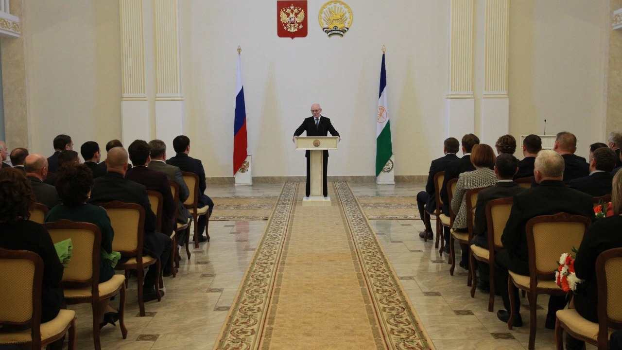 УФА, 28 дек 2017. /ИА «Башинформ»/. Сегодня в Уфе Глава Башкортостана Рустэм Хамитов вручил дипломы победителям и призёрам конкурса профессионального мастерства «Лучший по профессии».