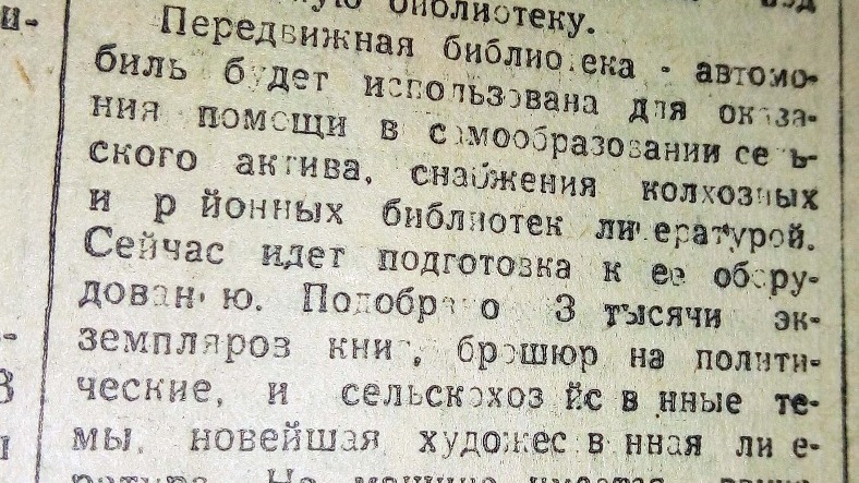 Передвижная библиотека предназначалась для оказания помощи в самообразовании сельчан, а также для снабжения колхозных и районных библиотек литературой.