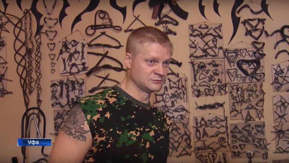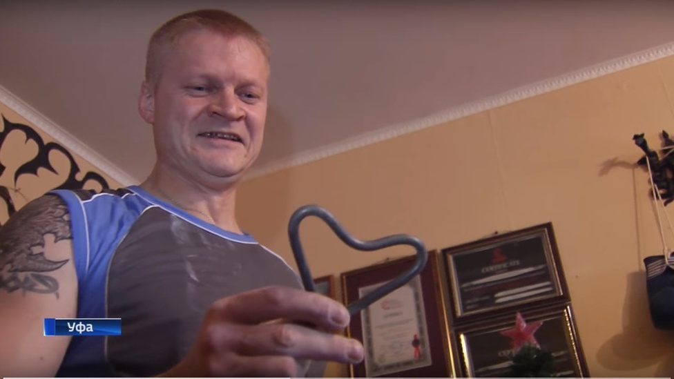 То, чем занимается силач, называется бэндинг. Этот силовой вид спорта пока не очень известен в России. Уфимец увлекся им четыре года назад, увидев шоу питерских силачей, воспроизводящих трюки атлетов царской России. Чтобы достичь результата, ему пришлось много тренироваться. Сейчас богатырь с невиданной быстротой завязывает гвозди в узлы, гнет их в форме сердца, лопаты сворачивает в трубочку. Спортсмен может не только разрушать, но и создавать. Он плетет из металла украшения и предметы декора.