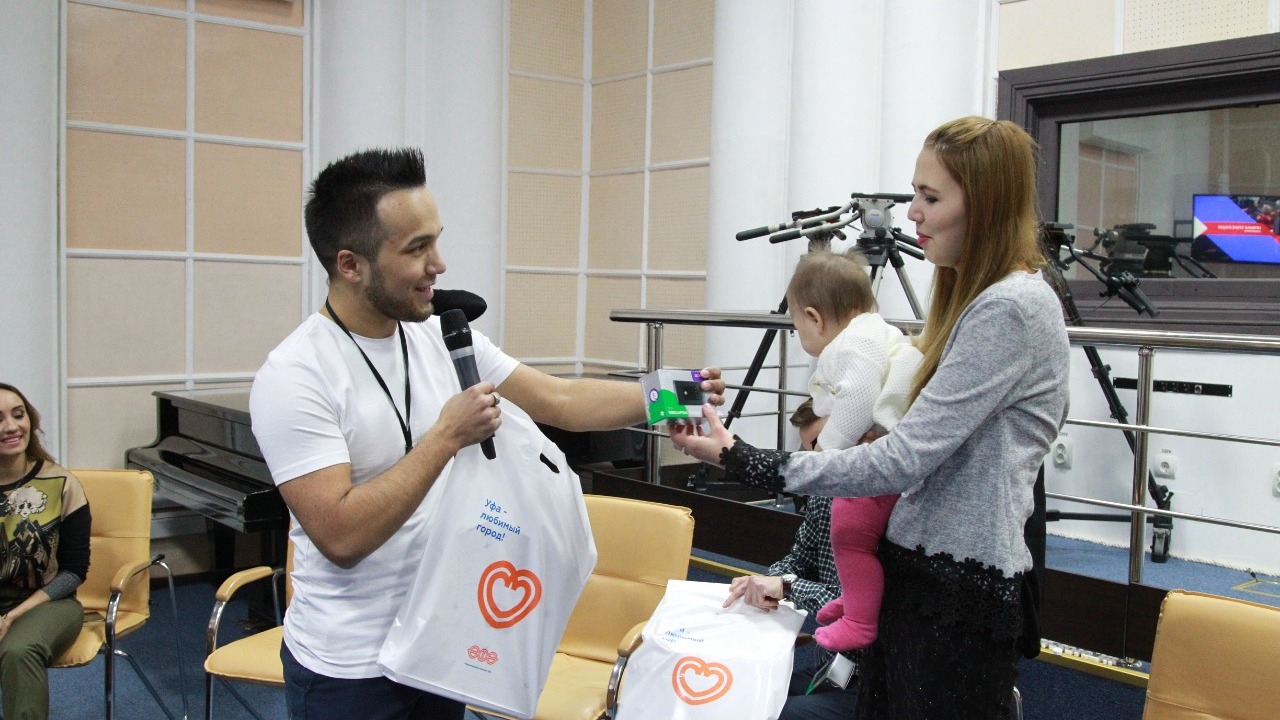 В медиацентре «Россия» известный уфимский блогер Элина Хаирова и популярный певец Загир Зайнетдинов поздравили участников акции, набравших самое большое количество «лайков». Это «родоначальник» флешмоба - специалист УМПО Амир Иксанов и молодая мама Карина Хасанова, пришедшая на встречу с девятимесячной дочкой Маликой.