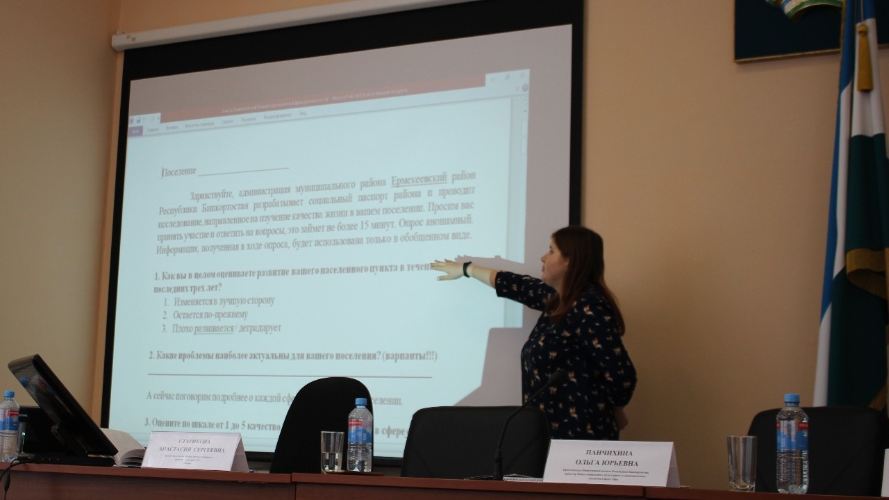 УФА, 6 фев 2018. /ИА «Башинформ», Алим Фаизов/. В Башкортостане муниципалитеты оформляют свои «Социальные паспорта» в рамках реализации Межрегионального проекта «Фонды местных сообществ - центры развития территорий». Такой паспорт вскоре появится и у Ермекеевского района. Накануне в районном центре селе Ермекеево состоялись презентация и мастер-класс по проведению исследования для разработки социального паспорта территории.