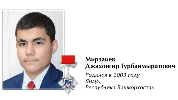 спас тонущего отца. Семья отдыхала в Архангельском районе на реке Инзер. Отец с сыном решили переплыть на другой берег. Неожиданно мужчине стало плохо, он только успел сказать сыну: «Ильфат, у меня закончились силы». Его уносило течением, подросток понял, что вплавь его не догнать, и побежал вдоль берега, стараясь не потерять отца из виду. Улучив удобный момент, он шагнул в воду и подплыл к отцу. Схватил его за туловище, оно обмякло и отяжелело - отец уже не дышал. Ильфат стал звать на помощь, прибежавшие мужчина и женщина помогли Ильфату вытащить отца из воды, сделали ему искусственное дыхание. Дыхание восстановилось, но мужчина не приходил в себя. Его увезли в районную больницу Архангельского района, отец благодаря сыну был спасен. Ильфат представлен к награждению медалью МЧС России «За спасение погибающих на водах».