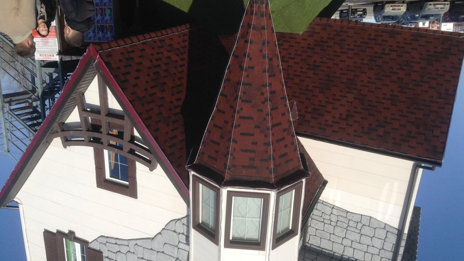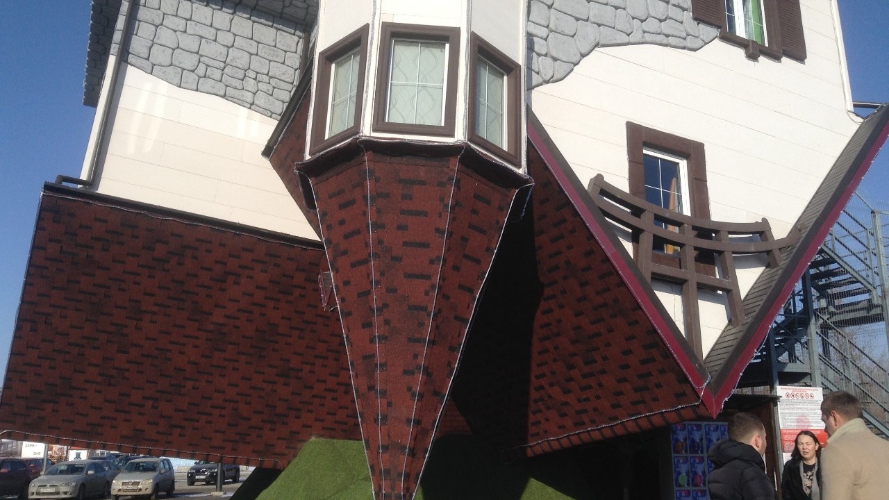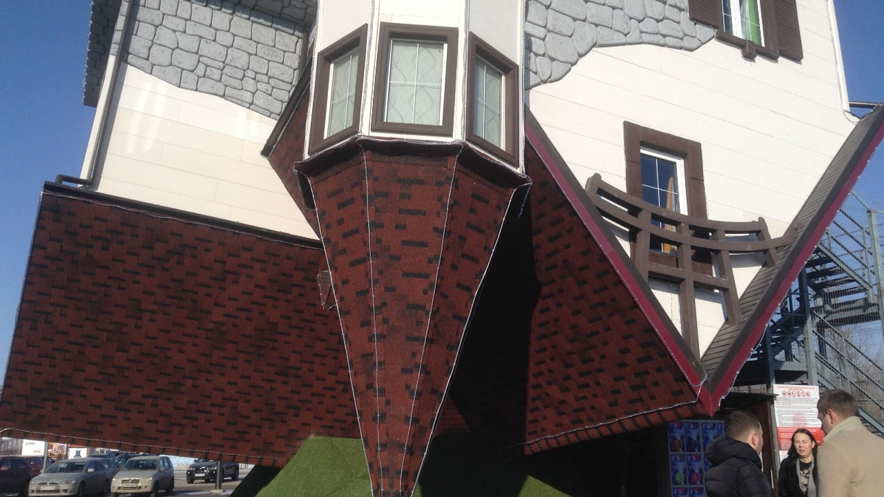 УФА, 16 фев 2018. /ИА «Башинформ», Розалия Валеева /. Необычный музей-аттракцион появился в Уфе - настоящий дом-перевертыш. Здание «стоит» на крыше, его фундамент обращен к небу.