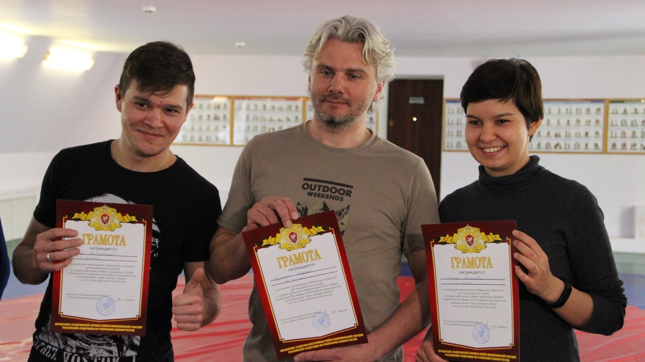 Заместитель начальника Управления Росгвардии по РБ полковник Ирек Сагитов поздравил всех участников мероприятия с наступающим праздником и показавшим самые лучшие результаты вручил грамоты об успешном прохождении отборочных испытаний. Победителем акции стал Линар Давлетбаев, на втором месте — Андрей Кузьмин, на третьем — Алина Таюпова.