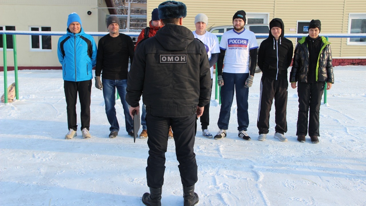 УФА, 21 фев 2018. /ИА «Башинформ», Ксения Калинина/. В Уфе на одной из специальных тренировочных баз Росгвардии 21 февраля восемь добровольцев — журналисты местных СМИ, чиновники и деятели культуры и искусства — проверили свои силы и выносливость, сдав нормативы бойцов ОМОНа.