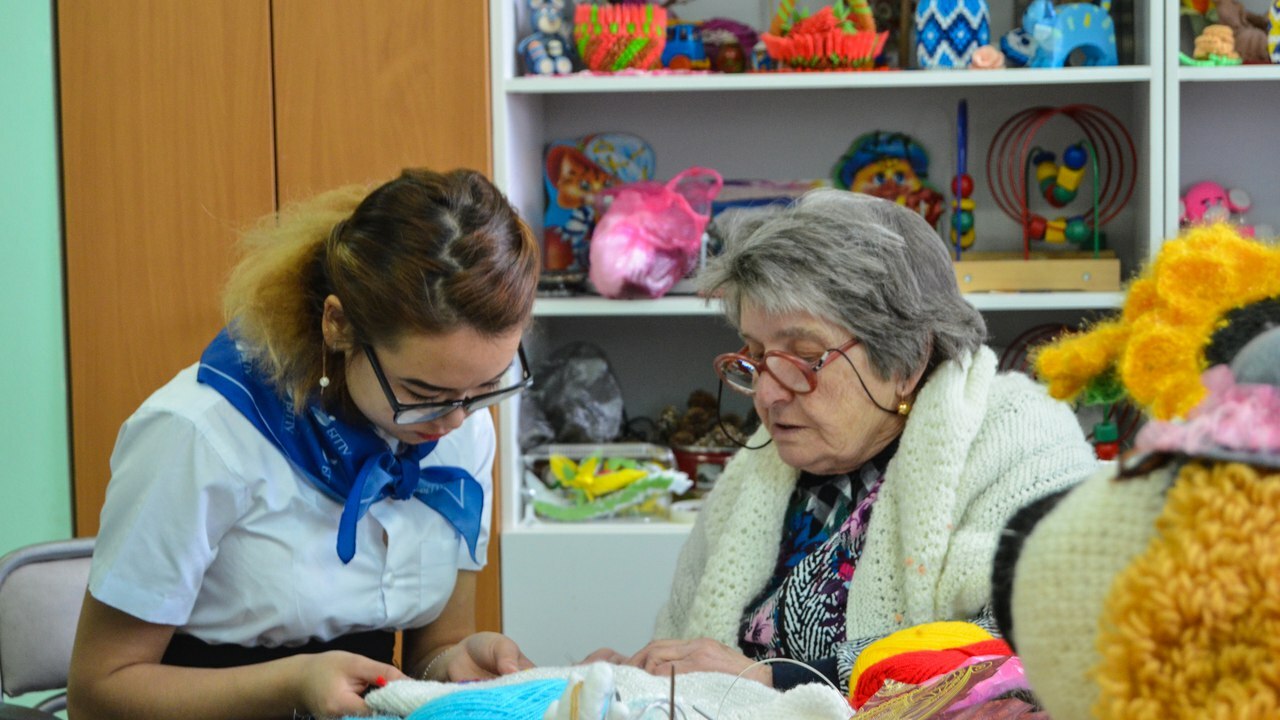 Серебряный волонтер, руководитель студенческого волонтерского отряда «Палитра» Института педагогики БГПУ им. М. Акмуллы Екатерина Савельева много лет курирует городской социальный приют для детей и подростков и уфимский дом-интернат для престарелых и инвалидов. На протяжении этого времени отрядом «Палитра» осуществляется проект «От внуков – дедушкам и бабушкам», основная цель которого – укрепление связи между поколениями, воспитание уважительного отношения к старшим. Для пожилых людей студенты вместе с детьми из городского приюта организуют различные концерты и представления, а также дарят подарки, изготовленные своими руками. Традиционно по окончанию праздника жительницы уфимского Дома-интерната для пожилых и инвалидов дарят воспитанникам приюта связанные своими руками варежки, носочки, шарфики.