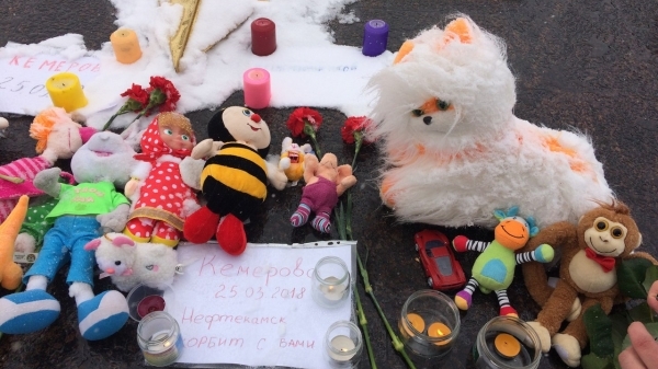 В знак памяти о погибших при пожаре в Кемерово организовали мемориал и жители Нефтекамска. Горожане приносят цветы, игрушки и свечи.
