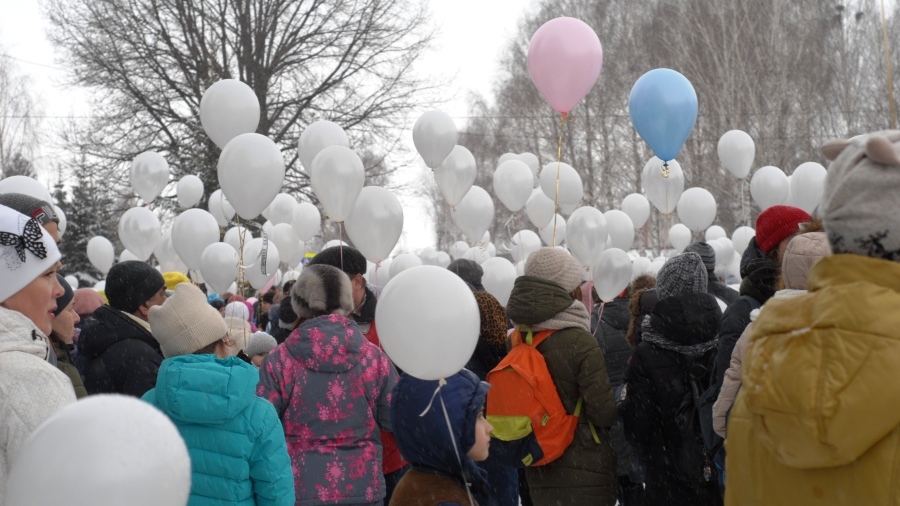 Жители Башкирии запустили в небо сотни белых шаров в память о жертвах кемеровской трагедии - видео