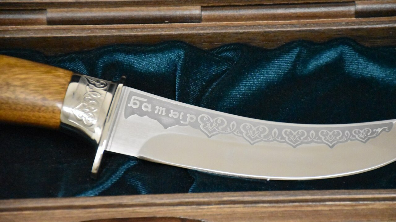 УФА, 2 апр 2018. /ИА «Башинформ»/. Башкирский нож «Батыр» - сочетание лучших традиций в одном изделии. Модель разработана в Златоусте как вариант восточного клинка. Подобная изогнутая форма считалась на Востоке самой удобной. Лезвие из качественной оружейной стали обладает отличной режущей кромкой, а деревянная рукоять из ореха имеет специальный упор под палец. Лезвие украшено восточным орнаментом и надписью «Батыр»: по договору с заводом-изготовителем наносить на нож это наименование может только уфимский магазин «Идеальные подарки».