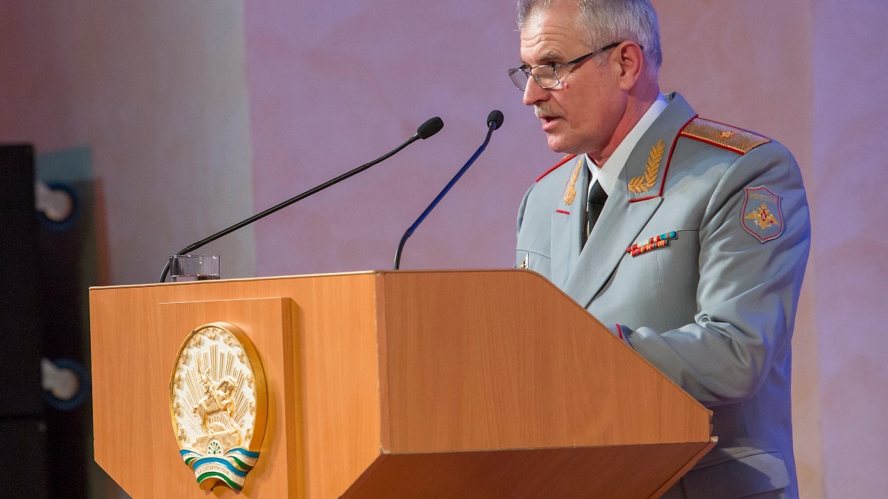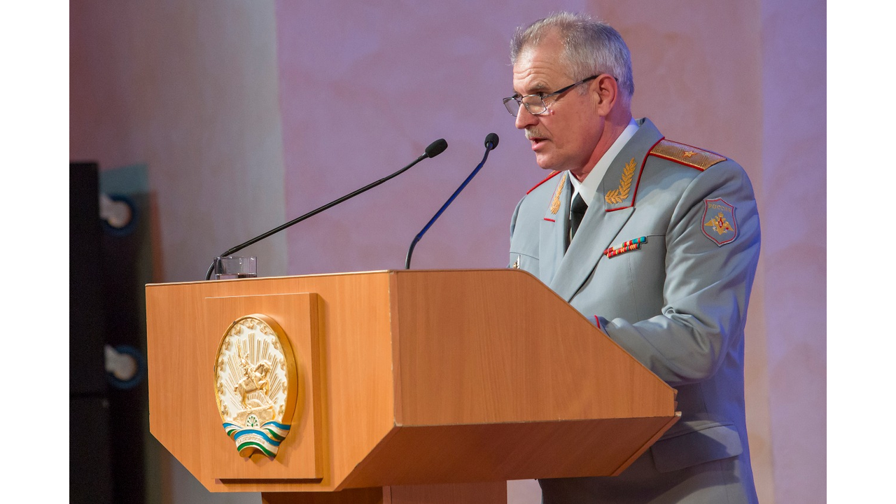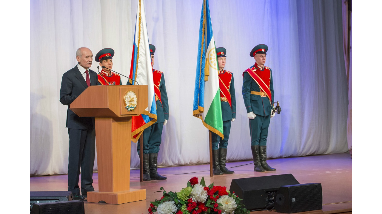 УФА, 10 апр 2018. /ИА «Башинформ»/. Сегодня в Уфе Глава Башкортостана Рустэм Хамитов выступил на торжественном собрании, посвящённом 100-летию Военного комиссариата республики. Руководитель региона поздравил сотрудников военкоматов и военнослужащих с этим событием и вручил государственные награды Башкортостана.