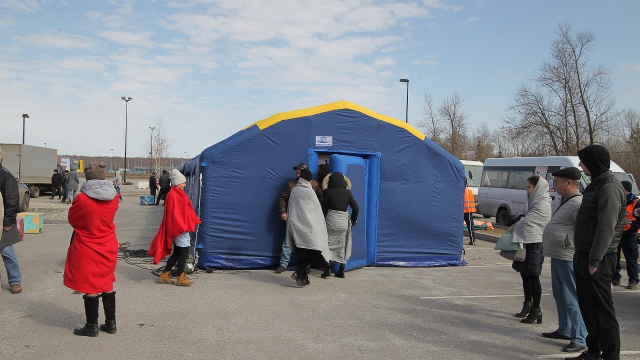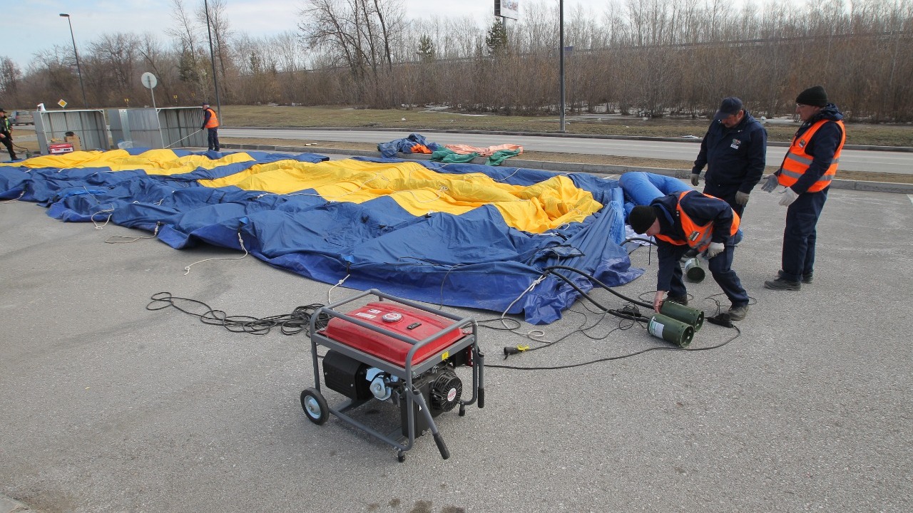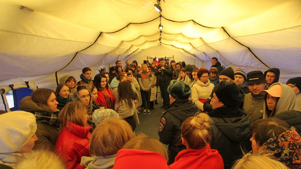 7. Также на парковке за три минуты был развернут шатер, рассчитанный на 200 человек. Внутри тепло — действует тепловая пушка. Здесь замерзшие посетители могли согреться горячим чаем.