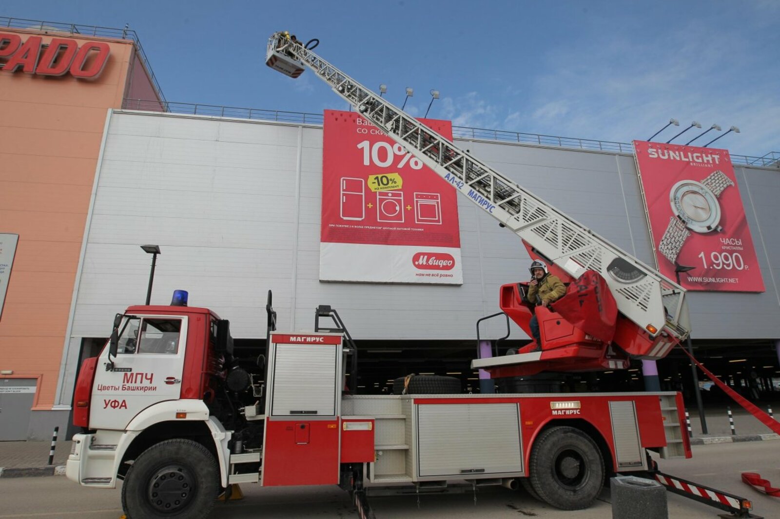 «Сегодня мы провели пожарно-тактические учение на объекте «Мега». По легенде, условное возгорание произошло в магазине «Эльдорадо». Сработала сигнализация. Персоналом была организована эвакуация, с чем они справились. Всего за девять минут было эвакуировано порядка 3000 человек из данного центра. По прибытии пожарных подразделений произошло развертывание. Всего было привлечено 11 единиц техники и 50 человек личного состава, — сказал начальник службы пожаротушения 22-го отряда Федеральной противопожарной службы РБ Салават Мигранов. — В целом и персонал объекта, и личный состав с поставленной задачей справились».