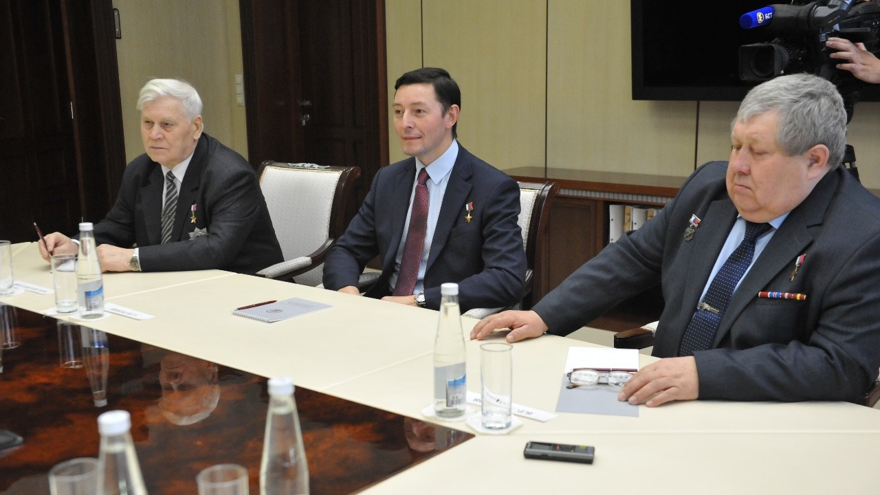 УФА, 12 апр 2018. /ИА «Башинформ»/. Сегодня в Доме Республики Глава Башкортостана Рустэм Хамитов встретился с Героями России – космонавтом-испытателем Сергеем Ревиным, лётчиком гражданской авиации, подполковником ВВС РФ Владимиром Шарпатовым и военным лётчиком, полковником ВКС РФ Владимиром Алимовым. В Уфе они наградили победителей и призёров республиканской