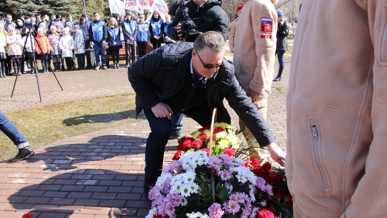 С теплыми словами поздравлений к собравшимся обратился исполняющий обязанности главы администрации Михаил Черкашнев. Слова поздравлений в адрес горожан прозвучали и в выступлении начальника автономной некоммерческой организации «Октябрьский авиационный технический спортивный клуб ДОСААФ» Айдара Хамитова.