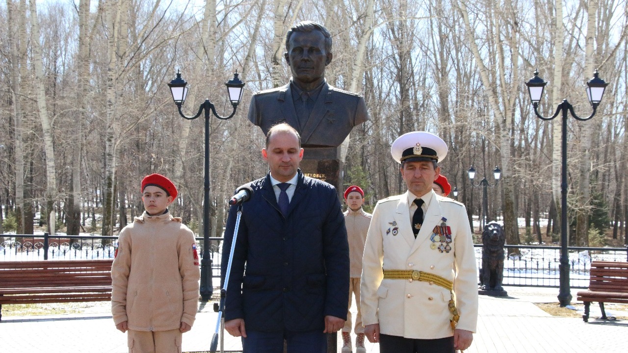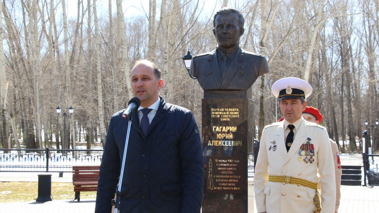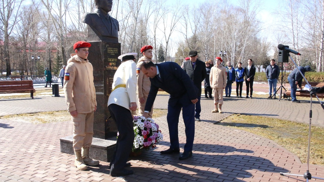 В Башкирии жители Октябрьского возложили цветы к бюсту первого космонавта Земли