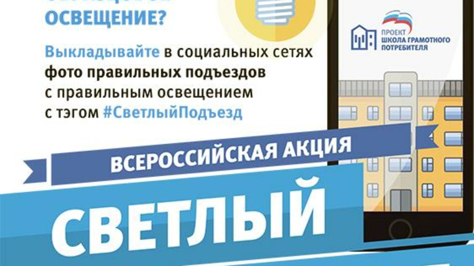 По результатам выборочной проверки и обращений граждан партпроект установит, в каких домах управляющие организации ненадлежащим образом реагируют на своевременную замену перегоревших ламп, а также не используются энергосберегающие лампы. Для того чтобы жильцы МКД знали, куда можно обращаться в случае отсутствия освещения в подъездах, активисты партпроекта «Школа грамотного потребителя» разработали памятку «Светлый подъезд».