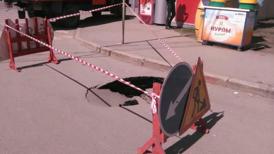 УФА, 13 май 2018. /ИА «Башинформ», Гульфия Акулова/. В Уфе на улице Ленина на проезжей части рядом с торговым центром «Экватор» произошла просадка грунта.