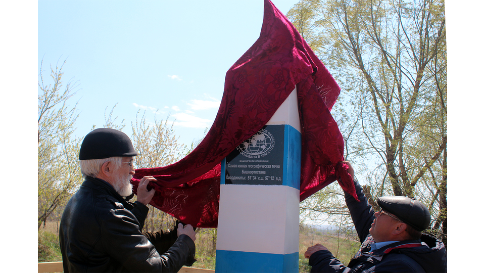 Открывая торжество, руководитель регионального отделения Русского географического общества в РБ Камиль Зиганшин отметил, что место для установления стелы южной географической точки республики выбрано очень удачно. Рядом, буквально в нескольких метрах, указатель границы Башкортостана с Оренбургской областью, а также центральная дорога, ведущая к крупной железнодорожной станции, расположенной в 15 километрах в городе Кувандык Оренбургской области. По словам Камиля Зиганшина, установленная стела — не просто географический знак, не какое-то ограждение, это южные ворота нашей республики, ворота дружбы для регионов – наших соседей. Известный писатель и путешественник выразил надежду, что со временем эта географическая точка станет брендом Зианчуринского района и всего Башкортостана. Он поблагодарил всех, кто занимался изготовлением и установкой стелы, облагораживанием территории вокруг нее.