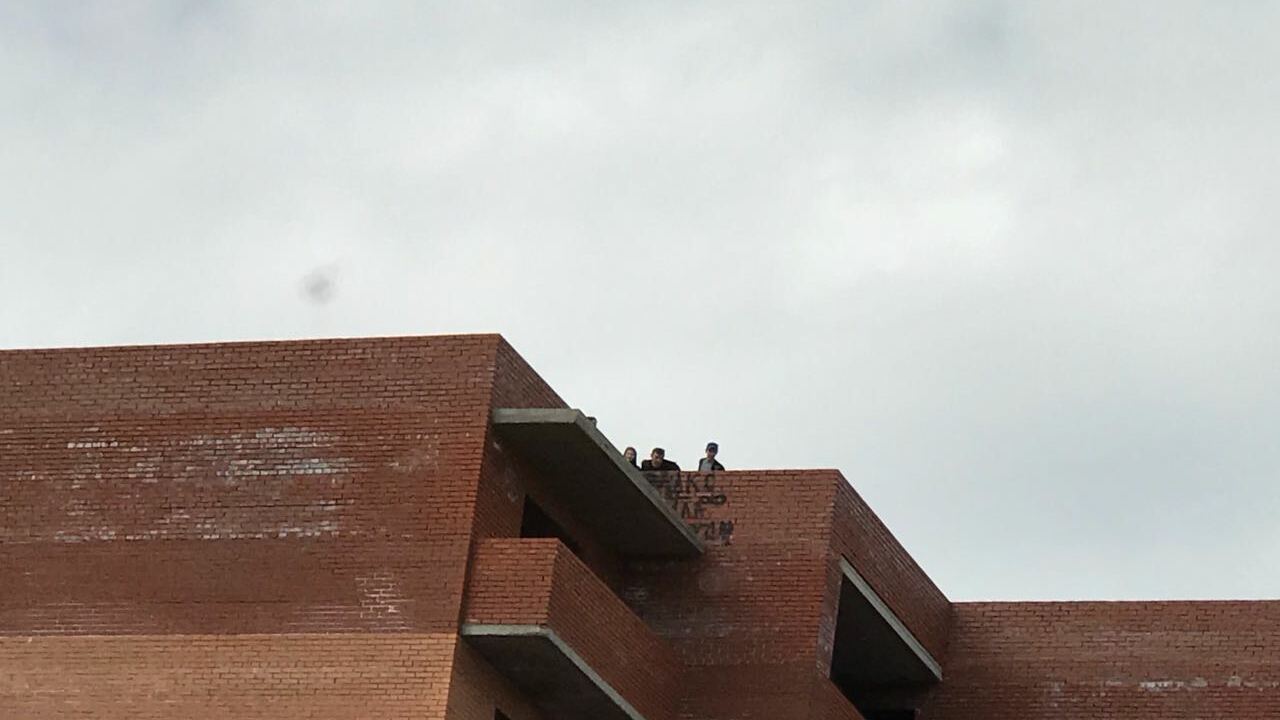 После очередного случая, когда на крышу здания забрались подростки, журналисты вызвали полицию. Отмечается, что сотрудники полиции прибыли оперативно, но штрафовать подростков было не за что. Полицейские рассказали, что приезжать сюда им приходится каждый день по несколько раз. Наказания для подростков, которые залезают на крышу, нет, ведь забор там отсутствует. Как проникновение на частную территорию тоже не оформишь, заявить об этом должен собственник, которого нет. Стражам порядка только и остается, что пугать несовершеннолетних и выгонять их со стройки.