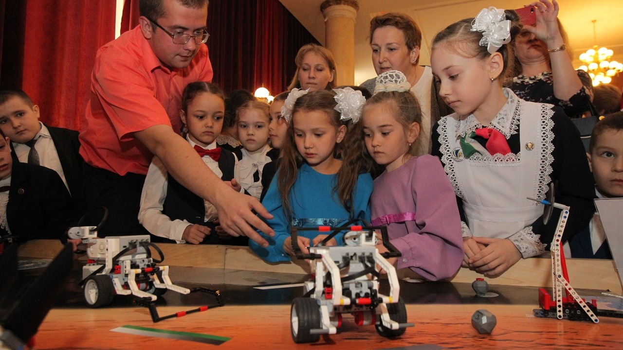 Глава республики поделился со школьниками своими воспоминаниями о том, как в детстве он видел Юрия Гагарина на первомайской демонстрации 1961 года в Москве, и пожелал будущей инженерной элите страны дальнейших успехов.