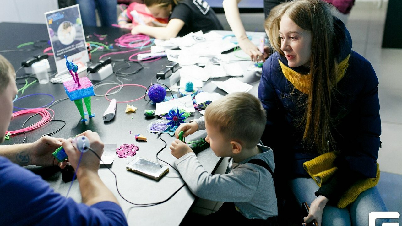 На выставке каждый найдет для себя что-то удивительное. Особой любовью у детей пользуется зона мастер-классов. С помощью ассистентов любой ребенок сможет нарисовать для себя объемную игрушку с помощью 3D ручки и соорудить космический шлем.