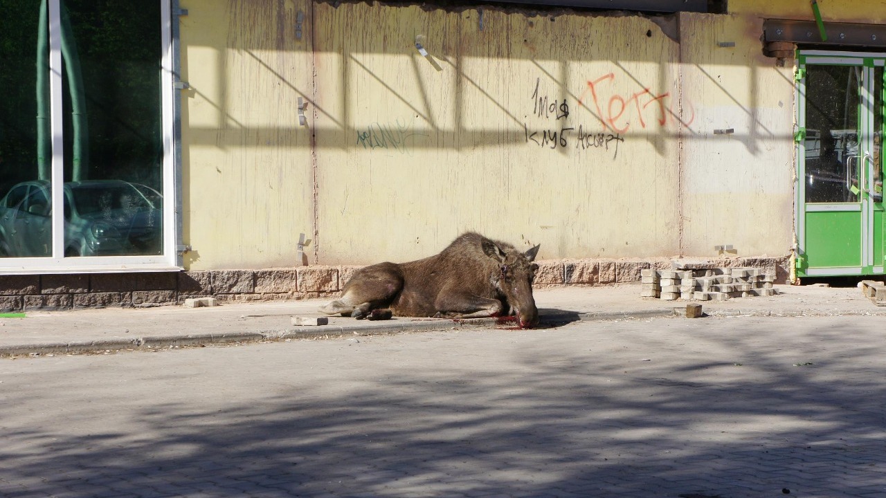 В Уфе в оживленной части города жители обнаружили окровавленного лося