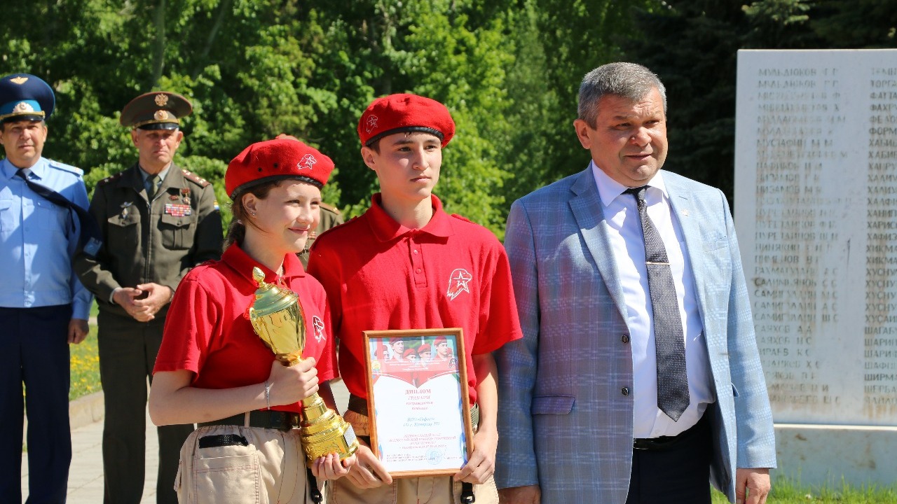 военно-спортивной игры «Победа». Чествовали победителей заместитель главы городской администрации Октябрь Латыпов, директор ГБУ «Центр патриотического воспитания и допризывной подготовки молодежи» Республики Башкортостан Гурий Поляков, начальник регионального штаба детско-юношеского военно-патриотического движения «Юнармия» РБ Арсен Зинатуллин и военный комиссар города Октябрьского Ришат Тазетдинов.