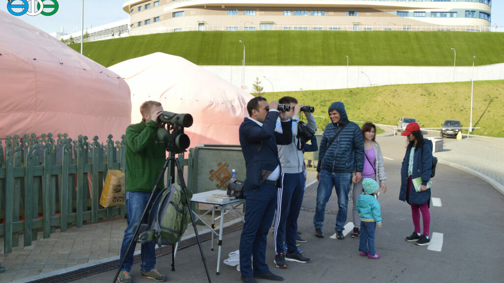 Около 200 уфимцев и гостей столицы смогли принять участие в конкурсах, играх, викторинах и орнитологическом квесте. Маленькие участники рассказывали со сцены стихотворения о лучшем певце России – соловье, мастерили поделки. Также здесь были представлены фотовыставка «Пернатые уфимцы» и выставка книг о птицах, демонстрировался видеофильм «Соловьиный рай». На видовой площадке можно было посмотреть в подзорную трубу и бинокли на пролетающих мимо птиц, а также сфотографироваться с ручными совами-сипухами.