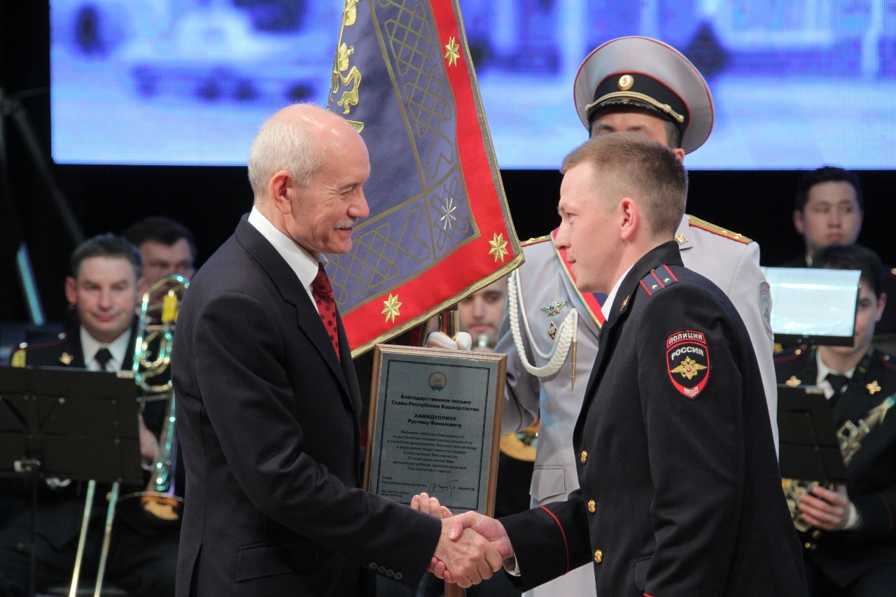 Глава республики выразил благодарность сотрудникам МВД по РБ за достойную службу, высокий профессионализм, принципиальность и мужество в борьбе с преступностью.
