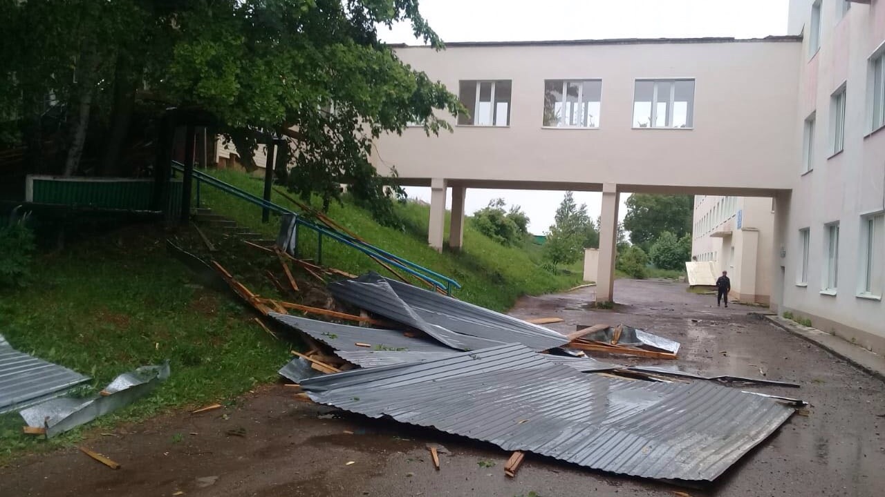 А вот в селе Калтасы Калтасинского района без крыши осталась часть здания центральной районной больницы: здесь кровлю сорвало с перехода между хирургическим и приемным отделениями на площади 60 квадратных метров. Погибших и пострадавших также нет.