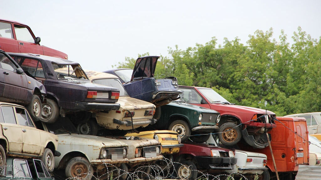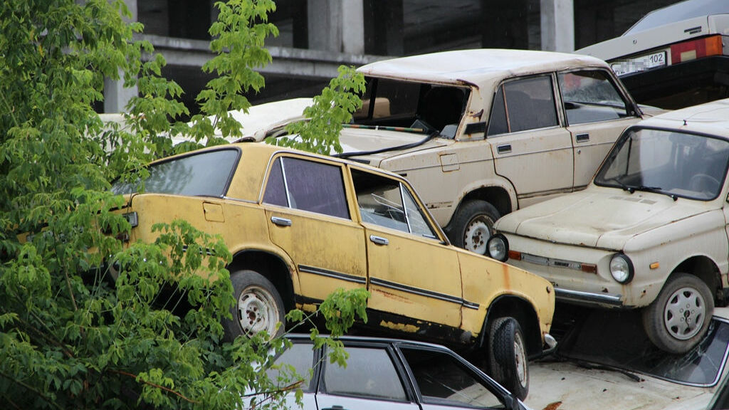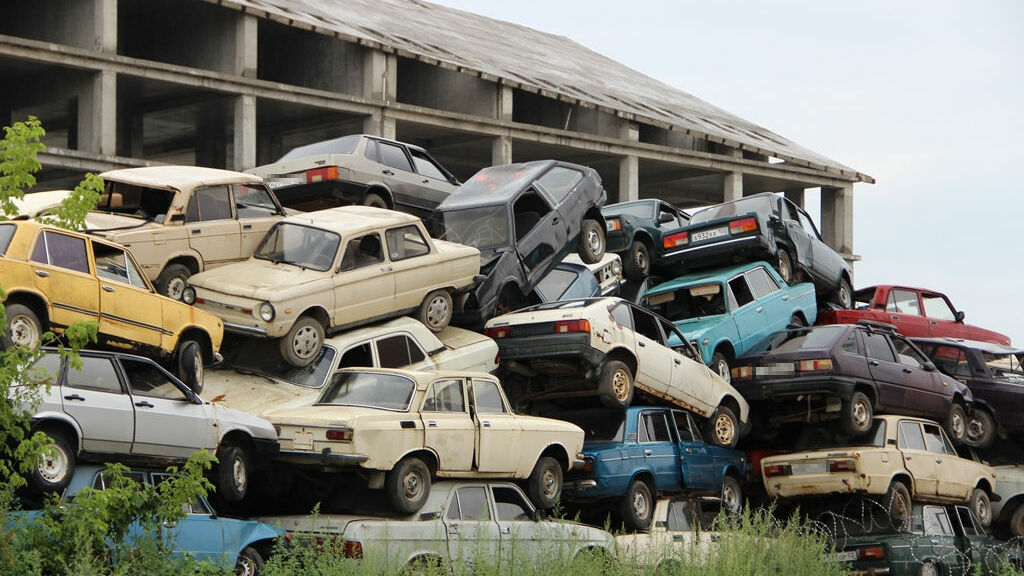 Почти все машины здесь с номерами, какие-то хранятся уже много лет. Места для них не хватает, поэтому самые «древние» складируются друг на друга.