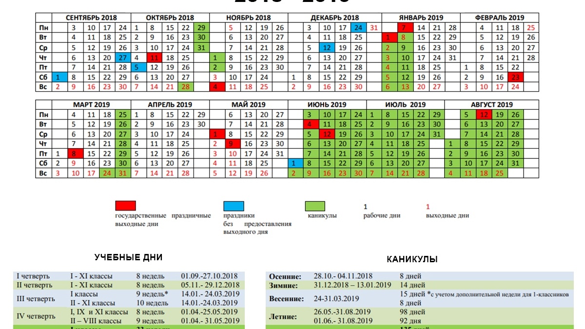 135 дней каникул и 35 учебных недель: полный календарь для школьников Башкирии на 2018/2019 учебный год