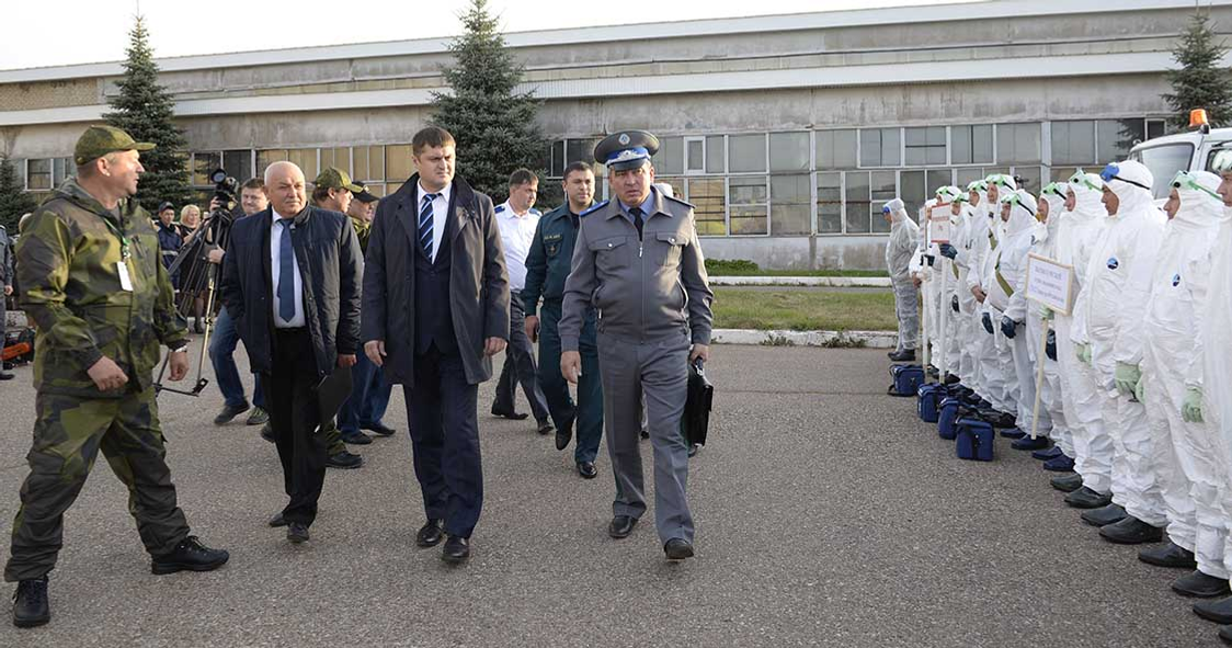 По легенде, внезапный падеж пяти поросят в возрасте двух месяцев произошел в одном из личных подсобных хозяйств в деревне Ашкадар. По клиническим признакам и результатам патологоанатомического вскрытия павшего скота был поставлен предварительный диагноз — африканская чума свиней. В связи с особо опасным заболеванием свиней в ЛПХ было проведено совместное заседание Комиссии по чрезвычайным ситуациям и межведомственной комиссии по предупреждению возникновения и ликвидации особо опасных и заразных болезней сельскохозяйственных животных и птиц. Принято решение о введении режима чрезвычайной ситуации на территории района. Далее участники учений приступили к практической части командно-штабных учений с выездом на место предполагаемого происшествия.