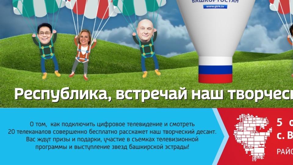 УФА, 4 окт 2018. /ИА «Башинформ», Алим Фаизов/. В Татышлинском районе республики охват населения цифровым телевещанием составляет почти сто процентов. Именно сюда направится в пятницу, 5 октября, творческий десант ГТРК «Башкортостан», завершая тем самым свой масштабный проект по информированию населения о переходе телевидения на цифровое вещание.