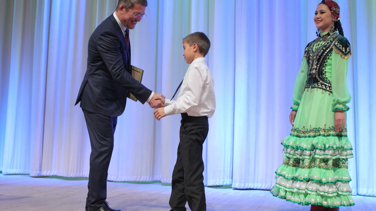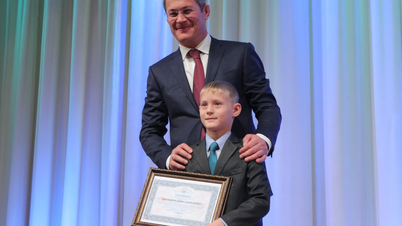 Радий Хабиров также наградил победителей конкурса детских рисунков «Моя земля - мое богатство!»: учащегося средней школы №2 села Бижбуляк Бижбулякского района Данилу Емельянова, ученика средней школы села Абдуллино Куюргазинского района Нияза Нигматуллина и ученицу средней школы села Новокулево Нуримановского района Ильгизю Ханову. Всего на конкурс детских рисунков поступило более 500 творческих работ.