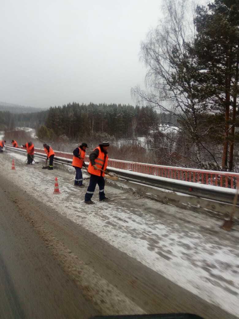По информации дежурного компании «Башкиравтодор», на данном участке для большегрузного транспорта движение было приостановлено сотрудниками ОГИБДД Белорецкого района из-за отсыпки дорожного покрытия пескосоляной смесью. Проезд для легковых автомобилей был организован по реверсивному движению.