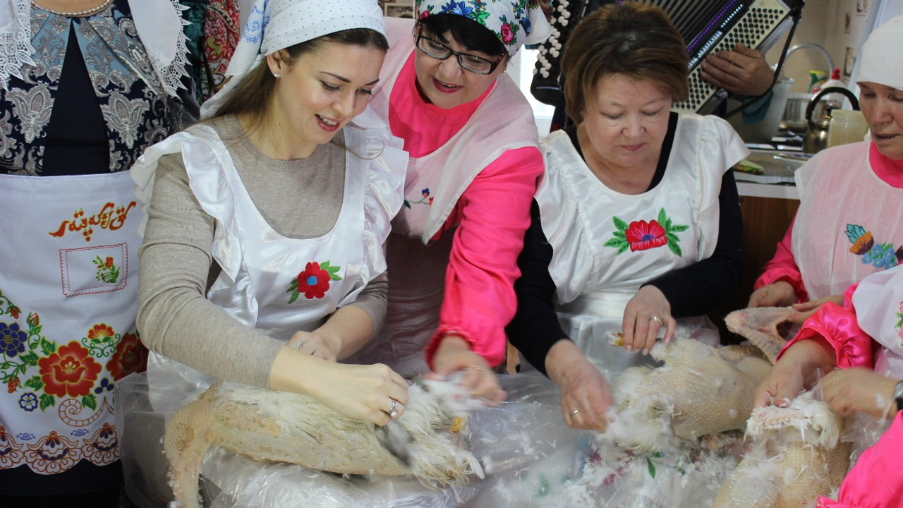 УФА, 5 дек 2018. /ИА «Башинформ», Наталья Овчарук/.5 декабря в деревне Калмашбашево Чекмагушевского района Башкирии отметили традиционный праздник гусиного пера. По традиции, селяне заготавливают гусиное мясо, ощипывают пух и перья на подушки, которые пойдут на приданое невестам.